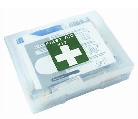 1 x thermal blanket, 1 x micro-pore tape, 1 x eye wash solution, 1 x crepe bandage, 1 x conforming bandages, 1 x eye pad, 1 x none adnerent dressing, 1 x triangular bandage, 1 x scissors, 1 x tweezers, 1 x pair of latex gloves, first aid safety leaflet.