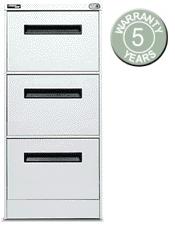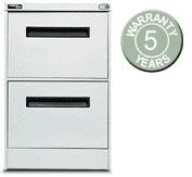 - Two drawer filing cabinet which offer the stability of a one piece wrap around body over a strengthened, fully spot welded chassis with high impact nylon roller running arms fitted to both drawers.