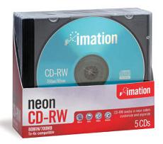 Imation™ CDRW 80min 700Mb 4x Neon Pk5