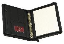 - This portfolio features a strap closure durable PU cover, a dual-function calculator, removable large capacity business or credit card holder, index-cut telephone address book, A4 lined note pad, stylish ballpoint pen and three additional pen loops.